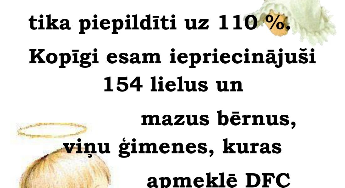 Eņģeļi pār Jumi noslēdzas. Ātrā spontānā ideja izvērtās par lielu, dāsnu akciju, kurā 154 bērni lieli un mazi kopā ar viņu ģimenēm tikai iepriecināti šajā svētku laikā.
