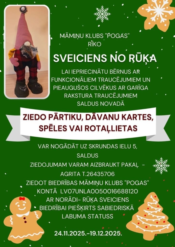 Mēs vēlamies sagādāt svētku prieku Saldus novada ģimenēm, kurās aug bērni ar funkcionāliem traucējumiem. Kopā mēs varam iedot ne tikai prieku, 🎁bet  arī "neredzamo" piederības sajūtu Saldus novadam.
